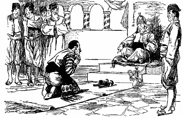Salón del Trono, cuando se presentó Tamburí, y, de hinojos ante el Sultán, le